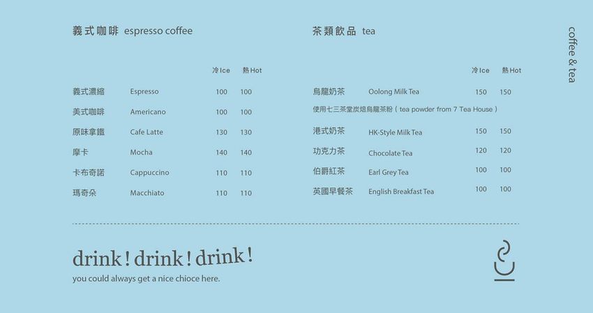 港式奶茶附了糖漿,伯爵紅茶則附了糖漿及牛奶。艾方妮點了原味拿鐵,非常滑順而且咖啡味香醇。