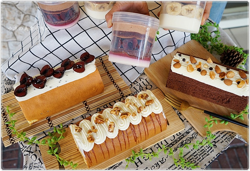 不同與一般生乳捲的單調,店家將上層擠上些許鮮奶油,再灑上蜜核桃點綴以及增加口感