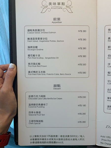 非常稱讚有一位男服務生 都會在餐桌遠一點的地方等我們大家談話到一個段落 才會走過來詢問是不是可以上甜點了