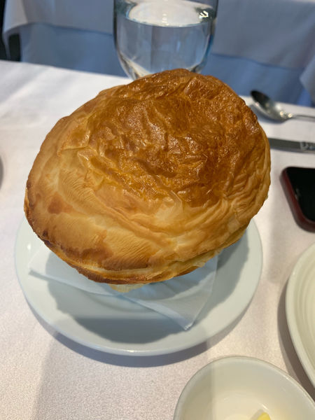 招牌的酥皮蘑菇湯是一定要的 酥皮剛烤出來超級酥脆 刀切貼下來都有卡次卡次的聲音