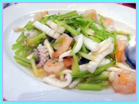 【時燴三鮮】這道芹菜梗,肥厚的蝦仁、軟Q的魷魚,脆口