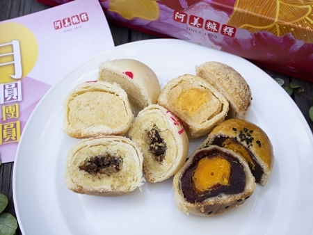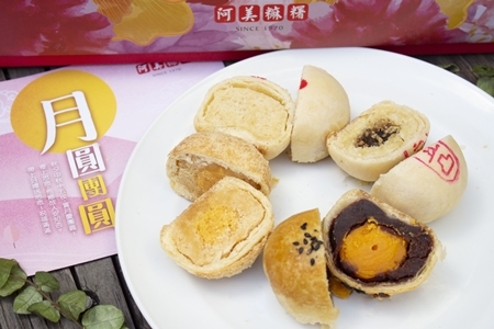 一盒裡面總共有八個,分別為晶沙酥、紅豆蛋黃酥、小月餅、綠豆凸,這些都是阿美麻糬的熱門商品,而且豆沙類的月餅肯定很受大眾喜歡,難怪他們會這樣組合,這禮盒超級完美的啊!
