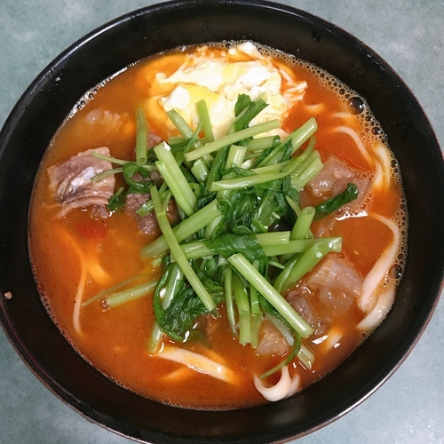 紅燒湯頭不會過油膩,是較重的牛油味,頗有香氣,私心認為湯頭給的量偏少送上桌的湯頭熱度沒有滾燙到需要吹幾口才能入口,再熱一些