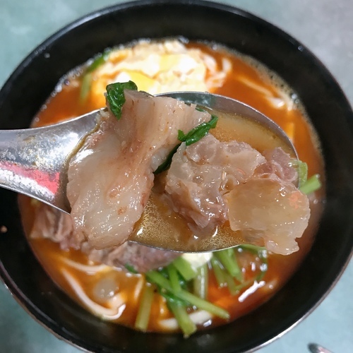 肉筋塊入口幾乎軟到化開的境界,牛筋量跟牛肋塊比例相當,我認為一人吃一碗的肉筋量會太多,邊際效用會遞減
