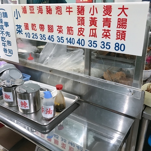 *✏️賣小菜,有大腸頭、燙青菜、小黃瓜、豬頭皮、滷蛋、豆干、海帶等,價格約$10-$80