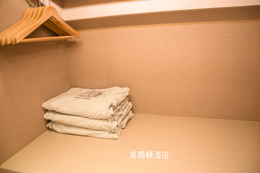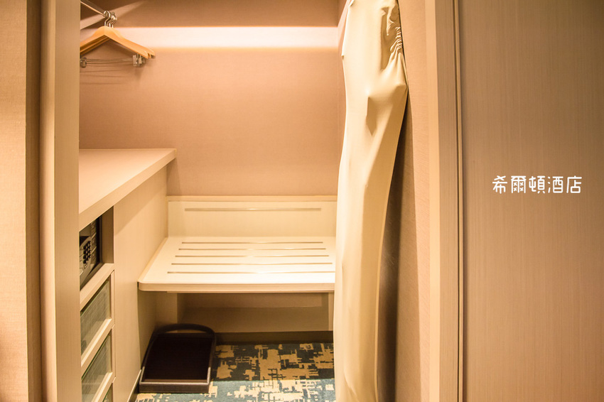 房間內設有簡單的更衣室,裡面有保險箱、浴袍,甚至連熨斗都有設置,設備應有盡有,我自己很喜歡這個更衣室,一般去飯店我們的行李箱跟衣服可能只能找地方放或是放在衣櫥裡,
