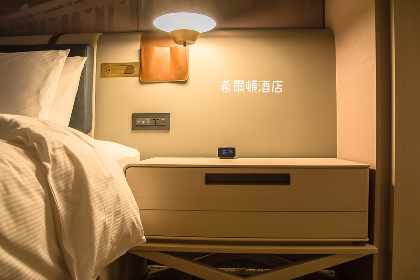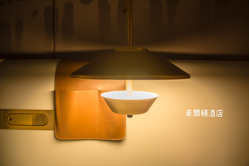 房間裡面我最喜歡的角落就是這裡,那個牛皮袋子是可以讓你放一些小東西的,然後旁邊那個看似電燈開關的東西,其實是閱讀燈,按下去之後會彈出來,就可以調整適合自己的閱讀角度,