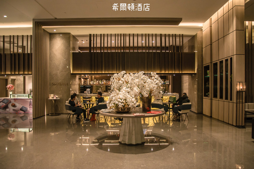 新板希爾頓也是台北第一間國際連鎖酒店,整棟建築物外觀與內部設計的非常有時尚感,一進到飯店裡面就會看到這充滿現代風格的大廳,一樓也有一個小型的吧檯區,