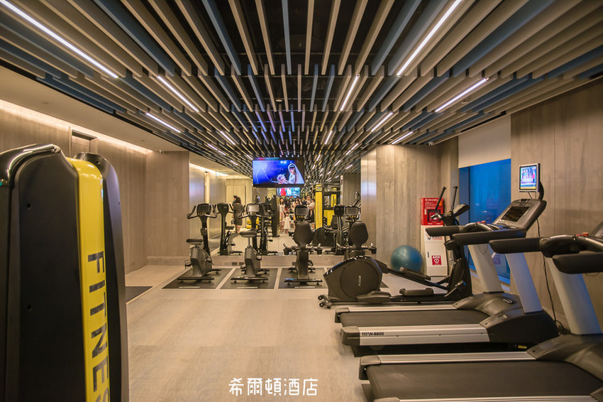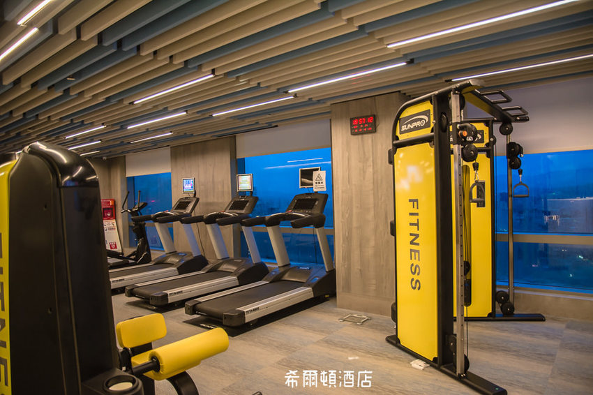 泳池旁邊就是這個24H開放的健身房,可以讓你一邊運動一邊欣賞板橋美景,且任何時段來都可以使用,你可以在不同的時段欣賞到不同的板橋景色,覺得還滿不錯的。