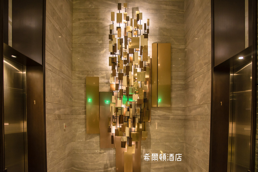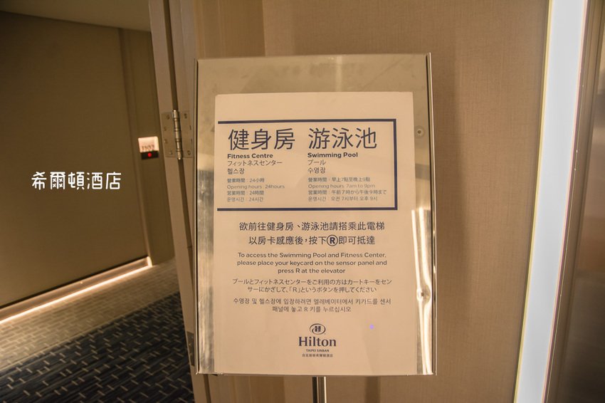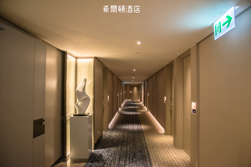 我很喜歡希爾頓的電梯處跟走廊,很簡單的設計,但有加入一些類似藍染的元素,讓整個質感提升許多,一樣的飯店電梯也是有安全管制,要到上面樓層也是需要刷房卡,