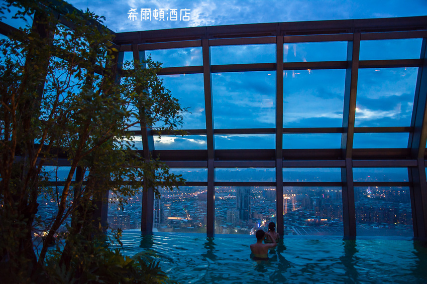 最後就是要來跟大家介紹這個新北市最高的無邊際泳池了,這無邊際泳池只要入住飯店即可享用,因為無邊際泳池就在最高樓層,從32樓眺望整個板橋那視野超棒,