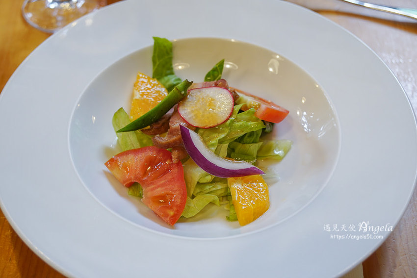 鴨胸沙拉佐以油醋醬是清爽的口感,可惜鴨胸肉質偏硬。