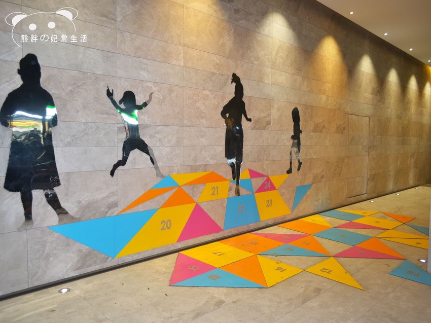 在大門口旁有一處繽紛的跳房子,