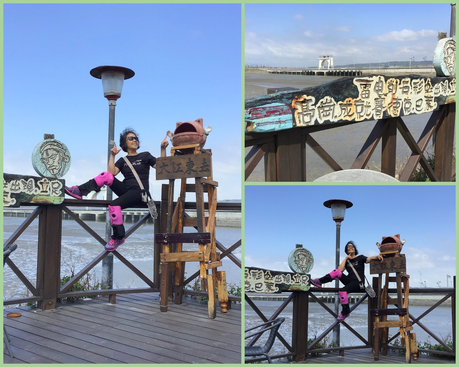 留下美好的回憶~~在南寮漁港的海灣木棧道。