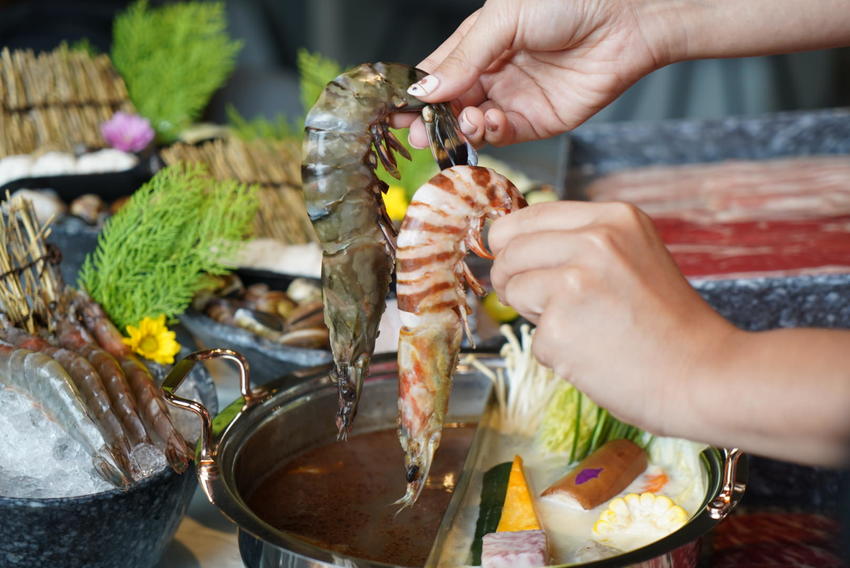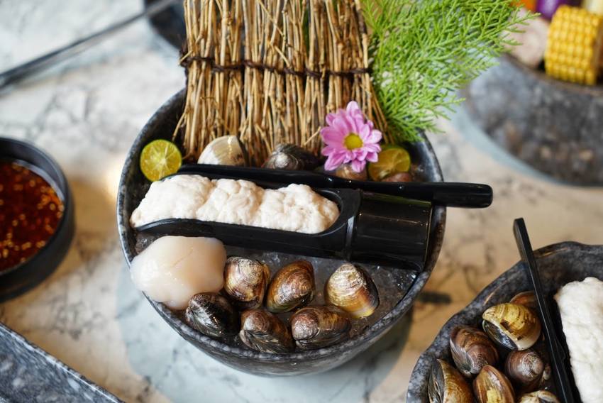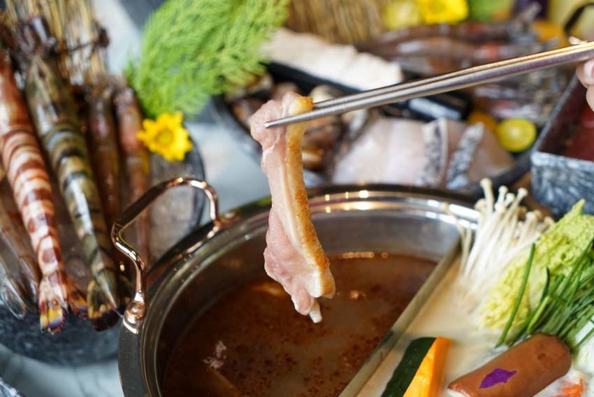 豚骨蔬菜湯底是以新鮮蔬果加上豬大骨下去熬煮的,絕無添加人工製精粉,讓你喝得到食材最真實的原味,蠻適合涮肉及海鮮的。再來是比較特別的金沙魚肉湯底,是主廚特製的沙茶搭配特選水庫野生大頭鰱魚肉,水庫是水源保護區,所以沒有投放農藥或是有害物質,絕對可以讓各位吃得安心!