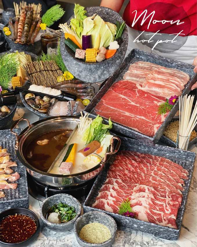 這間新開幕的火鍋店是前幾天與好友一同前來的,趁著新開幕好禮三重送趕緊來嚐鮮,有別於一般小火鍋,湯底皆為個人鴛鴦鍋,連肉品也有雙拼選擇,真的是一次滿足!店裝潢是以清水模結合大理石,門口也有拍照打卡處,用餐環境非常舒適,更重要的是服務也很好,餐具選購真的看得出店家的用心,總之初訪的經驗覺得很棒,中秋將至,不妨可以來Moon hot pot月團圓享用美味的火鍋,也可以順便來賞月🌙