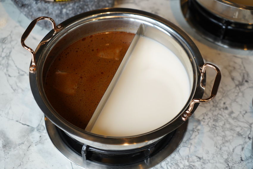 左邊為老火御膳麻辣鍋,右邊為牛奶南瓜鍋。