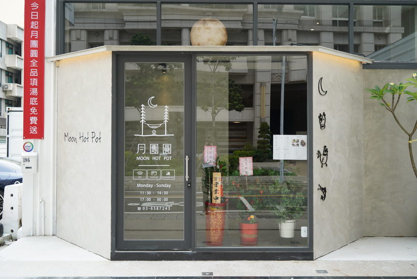 Moom hot pot月團圓火鍋就位於莊敬五街路上,有著文青可愛的白色招牌,周圍有很多路邊收費停車格可以停放,所以不怕有停車的問題。