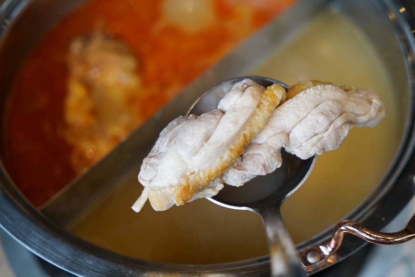 簡單套餐選了香煎雞腿排,很特別是雞腿排的皮會先稍微煎至微焦再上桌,上桌後微微可以聞到焦香,這樣下鍋煮可以減少皮的一些腥味,雞腿排肉質也非常鮮嫩,沾些醬料更美味!