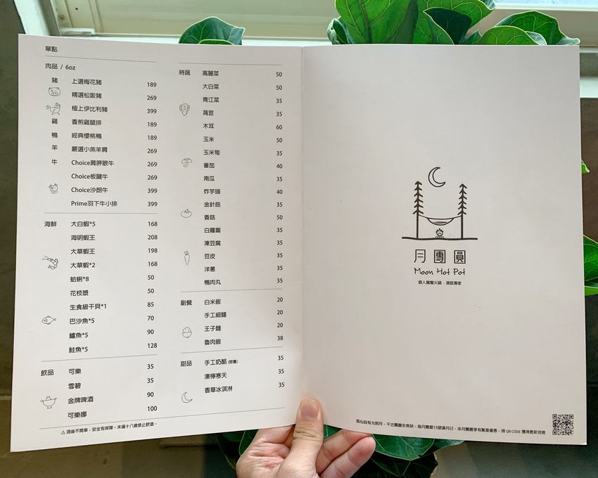 外頭這面打卡牆未免也太可愛了吧?!店家手繪的圖示是以火鍋菜色下去設計的,有牛、豬、雞、海鮮、蔬菜還有月亮,簡單的設計元素真的看了就舒服啊!
