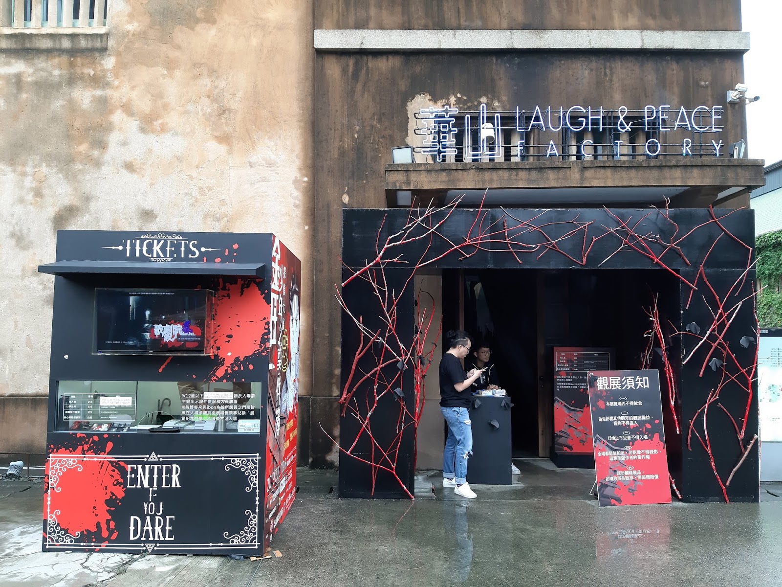展覽現場多數運用黑白灰紅等色彩,製造出恐怖氛圍。