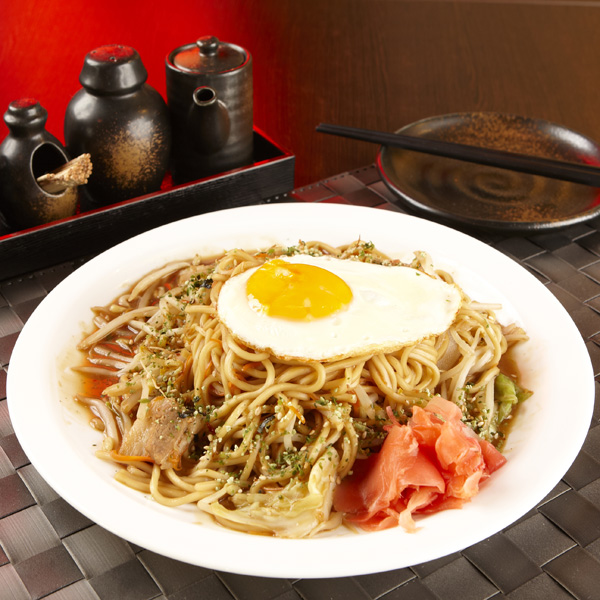 不能不嚐看看的日式炒麵(焼きそば)主廚特製的甘味照燒醬,與台式炒麵口味不太一樣,醬汁色深而濃稠,味道爽口而不油膩,加上軟嫩的豬五花、脆甜高麗菜與其他新鮮時蔬,加上單面煎的半熟蛋,香濃的蛋汁與麵條拌裹著一起食用,收汁入味而飽滿,更能帶出麵條香Q彈牙。
