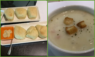 拍照就緒後,很快的前餐麵包和玉米濃湯相繼端上桌面;