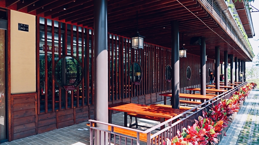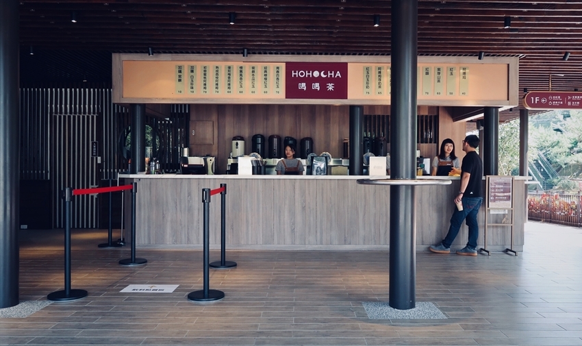 Hohocha喝喝茶主體館,以深木質調打造日式禪風極簡空間,在館內還可看見台式復古的紅磚堆灶設計以及撲鼻而來的紅玉紅茶蛋香,台日合體的設計風格,讓人可以放鬆的享受這幽雅氣息。