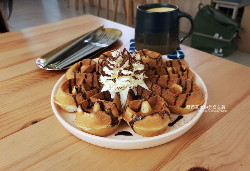 順便也加點了鬆餅,還加了麻糬,大家都吃的開心,酥脆鬆餅口感,裡面QQ麻糬和甜香的巧克力醬,彰化一日遊完美Ending~