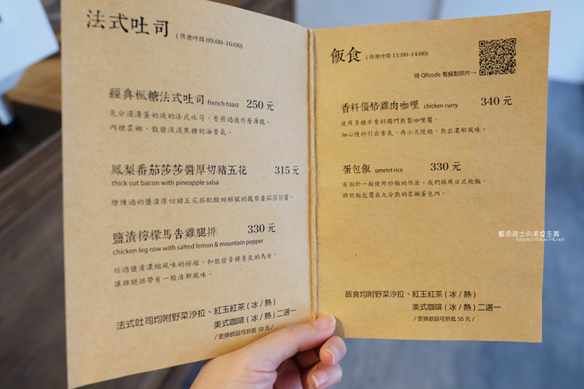 簡單放上主要餐點的2頁,右上角有QR code,可以掃描看餐點的相片