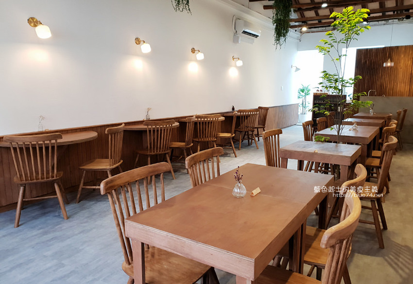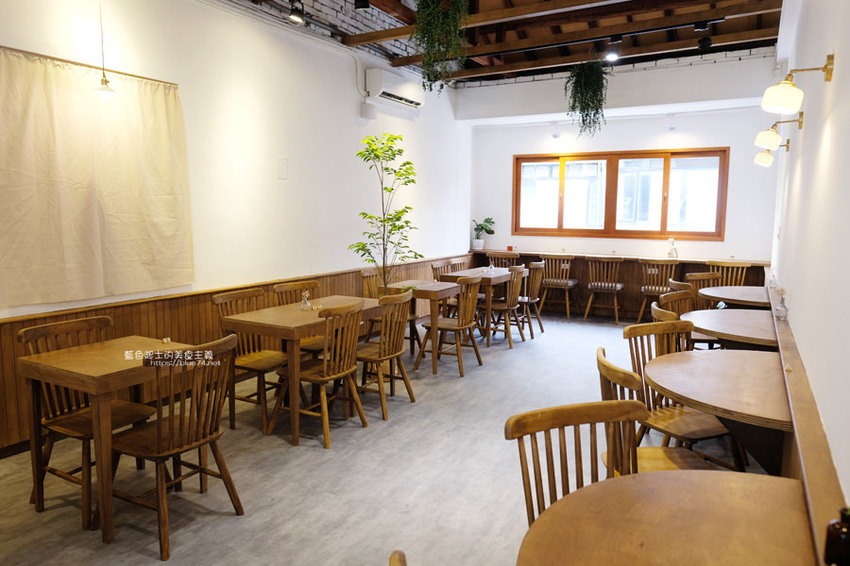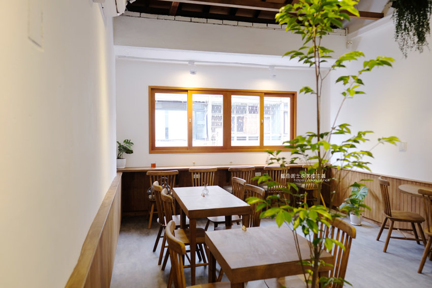 二樓空間寬敞舒適,木質調的空間、靠窗的吧台座位,些許綠意點綴,在台中有滿多家類似的,也是我喜歡的類型。