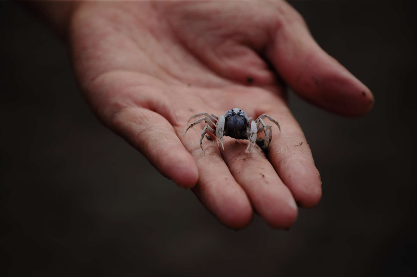剛好是退潮的時間,柴寶們興奮地在沙灘奔跑,與成群的和尚蟹共舞