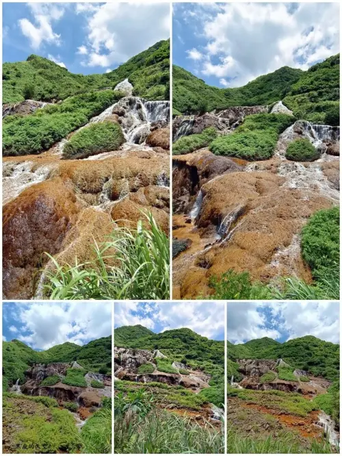 ▲由於金瓜石一帶有礦脈,地下水和雨水和礦物經過化學反應後水色帶有氧化後的金屬礦石顏色,形成金黃色的瀑布景觀,加上裸露的石塊也是黃色,因而得名。也造就了現在的陰陽海的特殊景觀。
