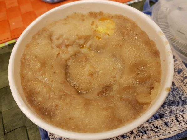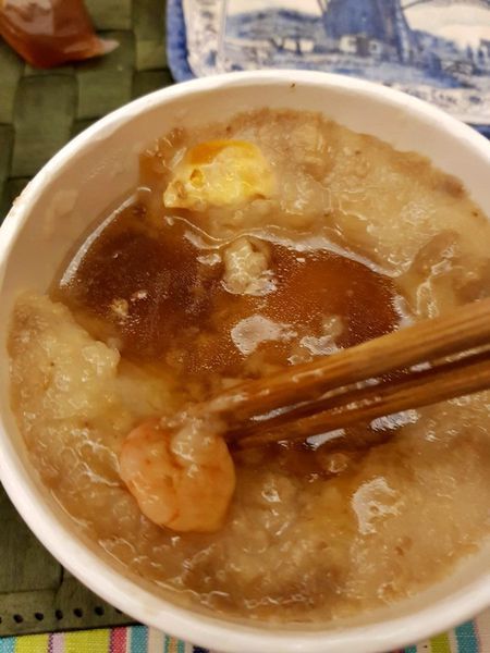整個米漿是有調過味的 (有鹹淡) 裡面還有蛋黃, 一隻蝦仁, 瘦肉