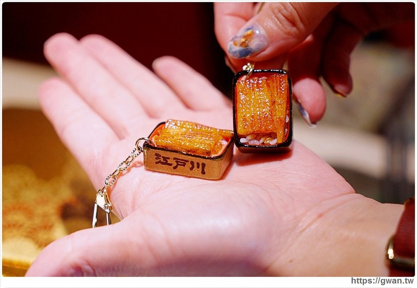 台北送黑色飯盒、台中是金色飯盒,鑰匙圈小巧可愛,上面鰻魚壓下去還軟Q軟Q的很療癒