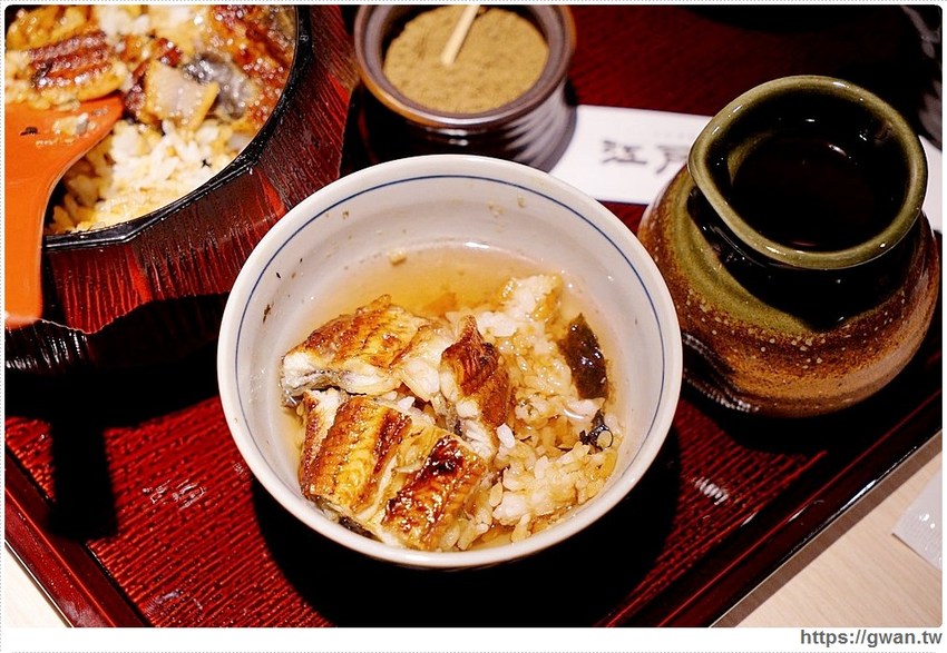 自己最推薦鰻魚飯三吃,一次可享用三種不同風味,先前在日本第一次吃到就很喜歡,開幕首日也是半價招待,只要275元就能吃到囉