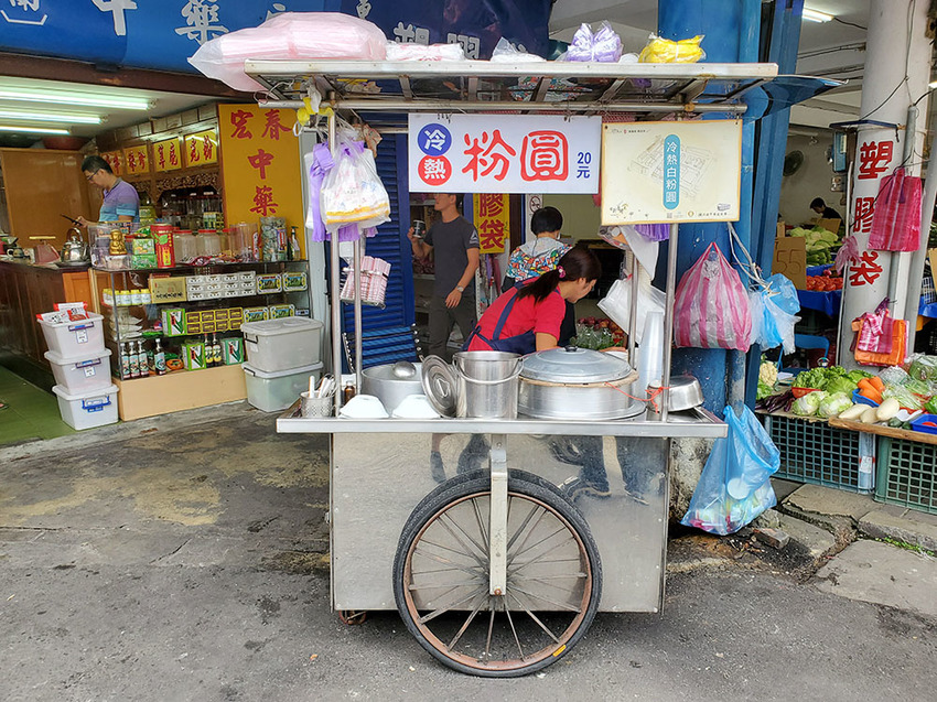 在光復路141號的中藥行前停駐著一台攤車,賣的東西相當單純,只有白粉圓這一個品項,可以選擇要做冷飲或熱飲。