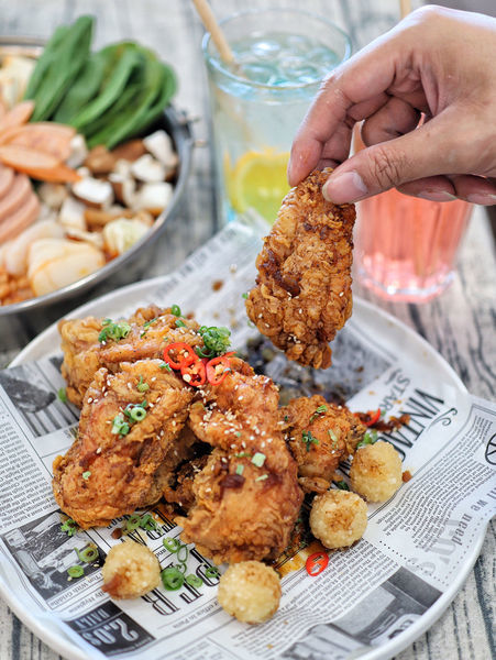 ▫️再來是本日最期待,電影「雞不可失」中爆紅水原王炸雞!除了酥脆外皮跟豐富肉汁的嫩口肉質,最想推薦的是它上頭淋上的特製獨門排骨醬汁,鹹香中帶點酸甜跟辣度,有效降低油膩感,一般韓式通常我吃幾塊會覺得油,這個我可以解決一整盤!附上的炸糯米糰也是第一次吃,外頭像鍋巴般的嘎嘣脆,沾著醬料吃很有味道。