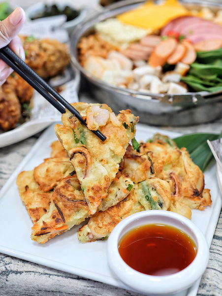 ▫️海鮮煎餅外脆內軟,除了有蝦仁、魷魚,竟還有整顆的蚵仔,麵糊略帶彈性,混雜韭菜跟香蔥香氣,充滿豐富滋味。
