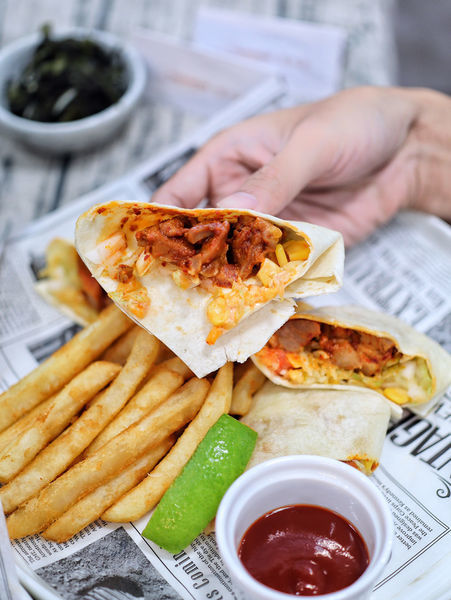 ▫️塔可餅就是墨西哥餅,柔軟有彈性的軟餅皮,包上生菜跟肉以及各種醬料,入口香、辣、酸、甜俱全,選用的結實的辣雞腿肉,口感飽滿,還有附上炸薯條呢。