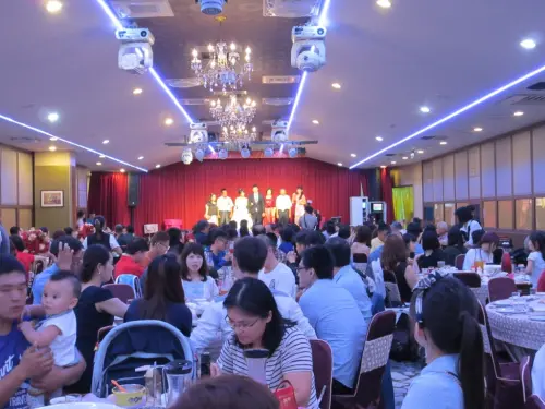 現場非常寬闊,座位和座位之間有保持一定的距離,不會發生和別桌碰撞的情況,前陣子在吃朋友的喜宴,場地就不大,一起身就會撞到別桌的人,害我都要等到人潮退了才離開座位,在金冠可以放心起身,不會有撞到人的後顧之憂,很棒!