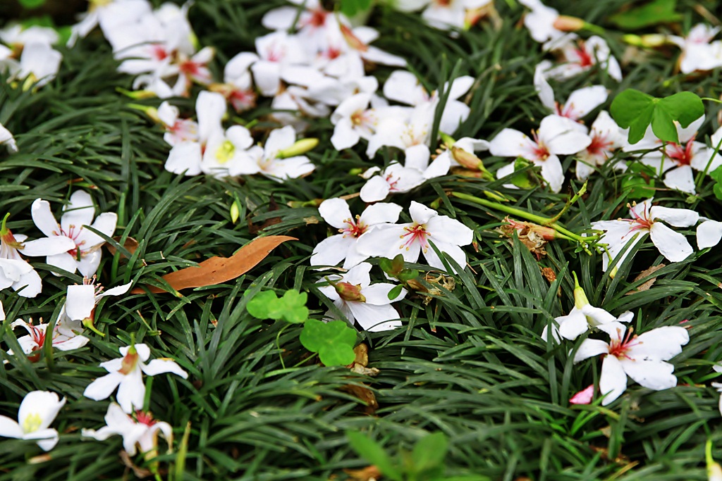 走進愛麗絲花園,發現地上掉滿了油桐花,非常的詩情畫意