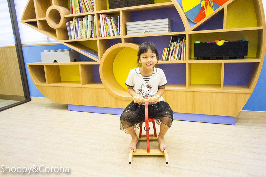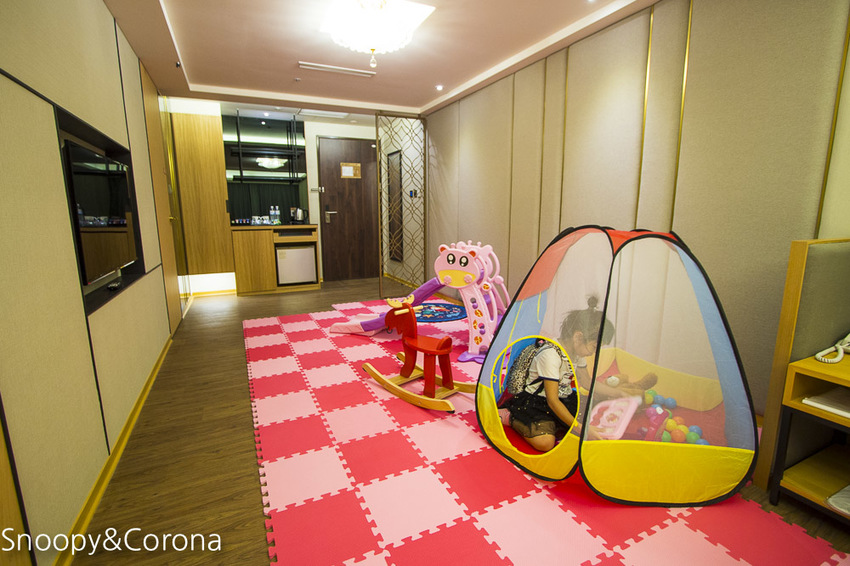 兒童遊戲室位於飯店2樓,裡面有積木、搖搖馬、益智玩具、兒童繪本…