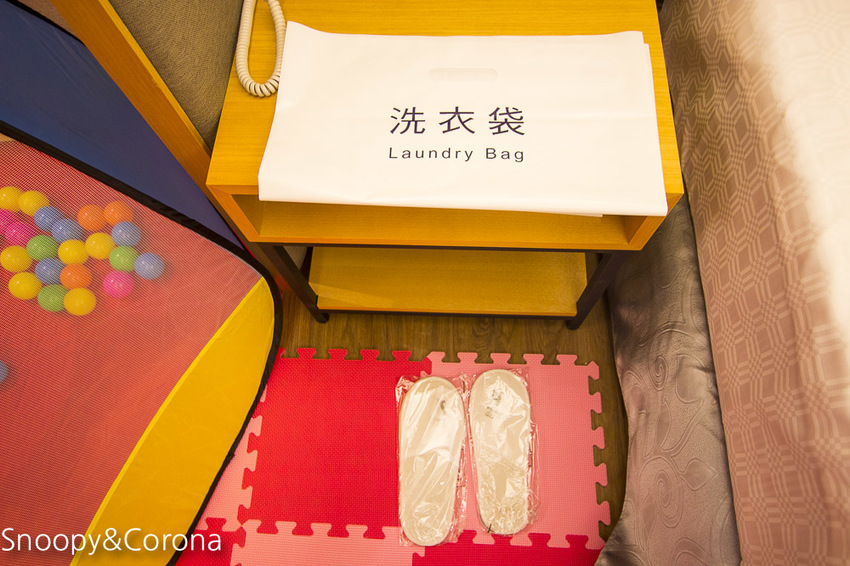 床邊備有洗衣袋和拖鞋
