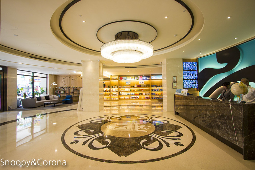 接待大廳以鵝黃色與黑色大理石打造,搭配著豪華水晶燈寬敞氣派,