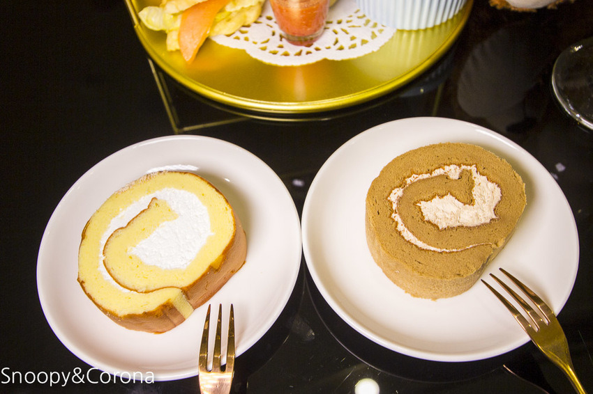 生乳捲一個是原味的,一個是咖啡的,
