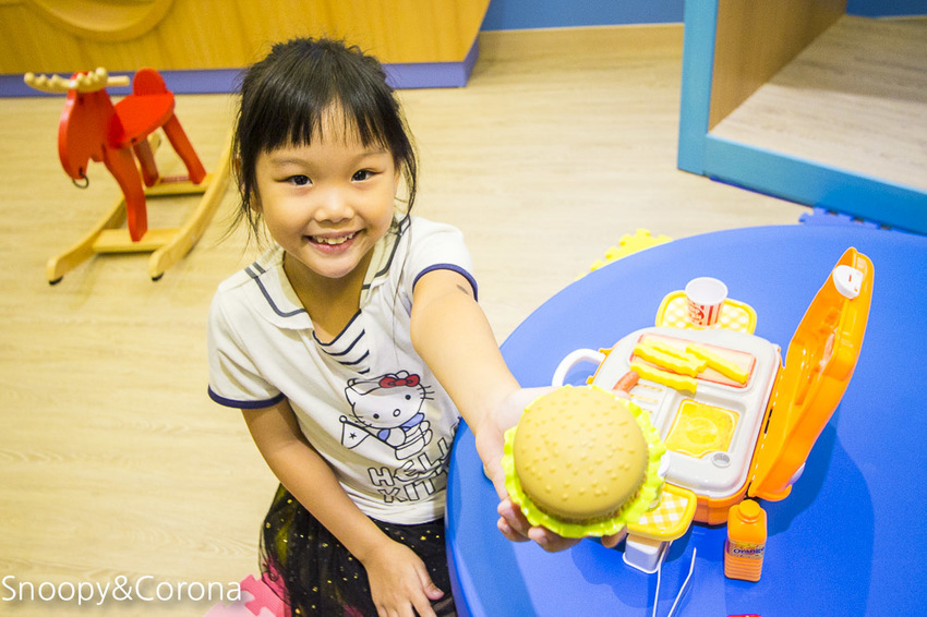 玩具雖然還沒有很多,但可樂娜光當漢堡店老闆、