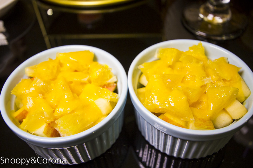 柳橙、蘋果、奇異果等季節性的水果再淋上水果優格酸酸甜甜。