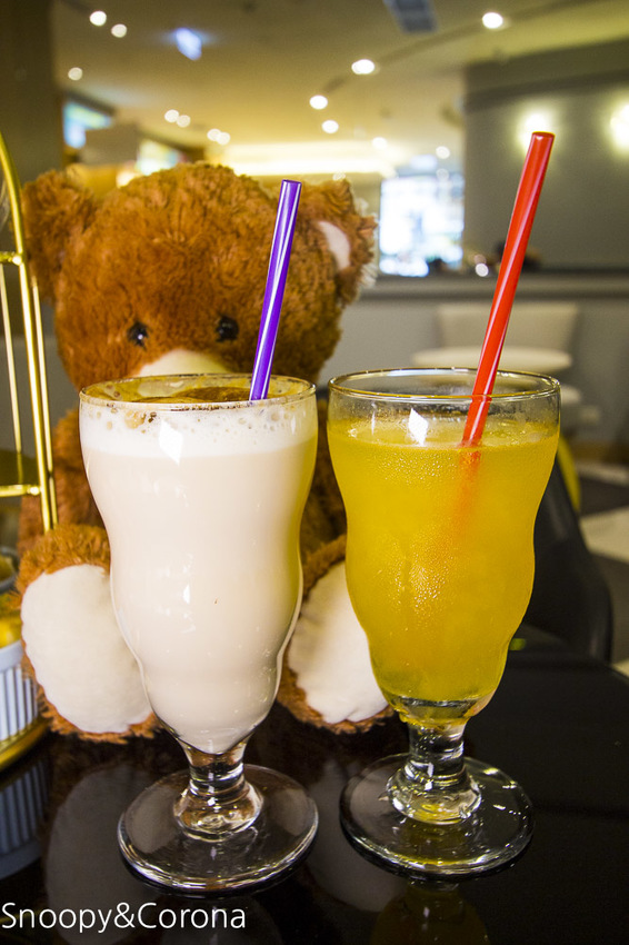飲料我們點了黑糖奶茶和現榨柳橙汁,