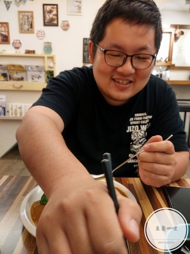 有件事告訴我們吃飯時千萬不要找飢腸轆轆的人,很勉強地拍了咖哩飯照後,底下這個人已經眼明手快的想夾走我的豬排,